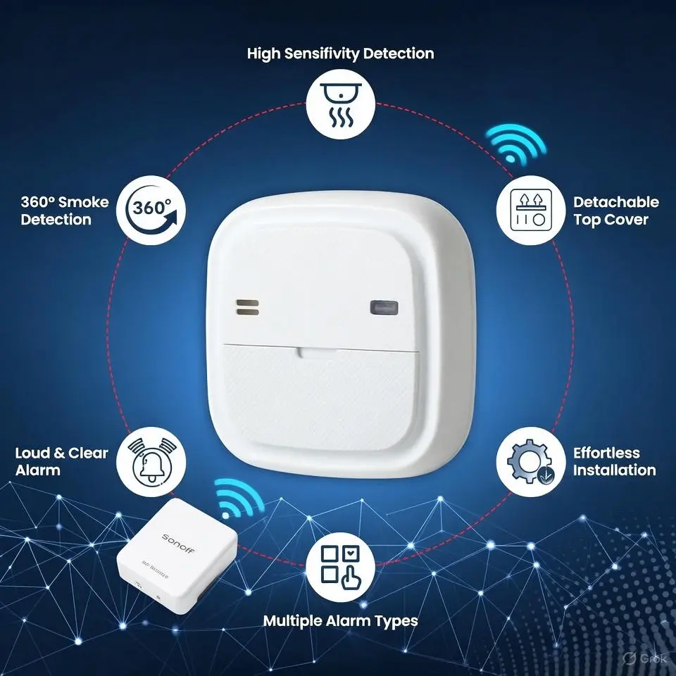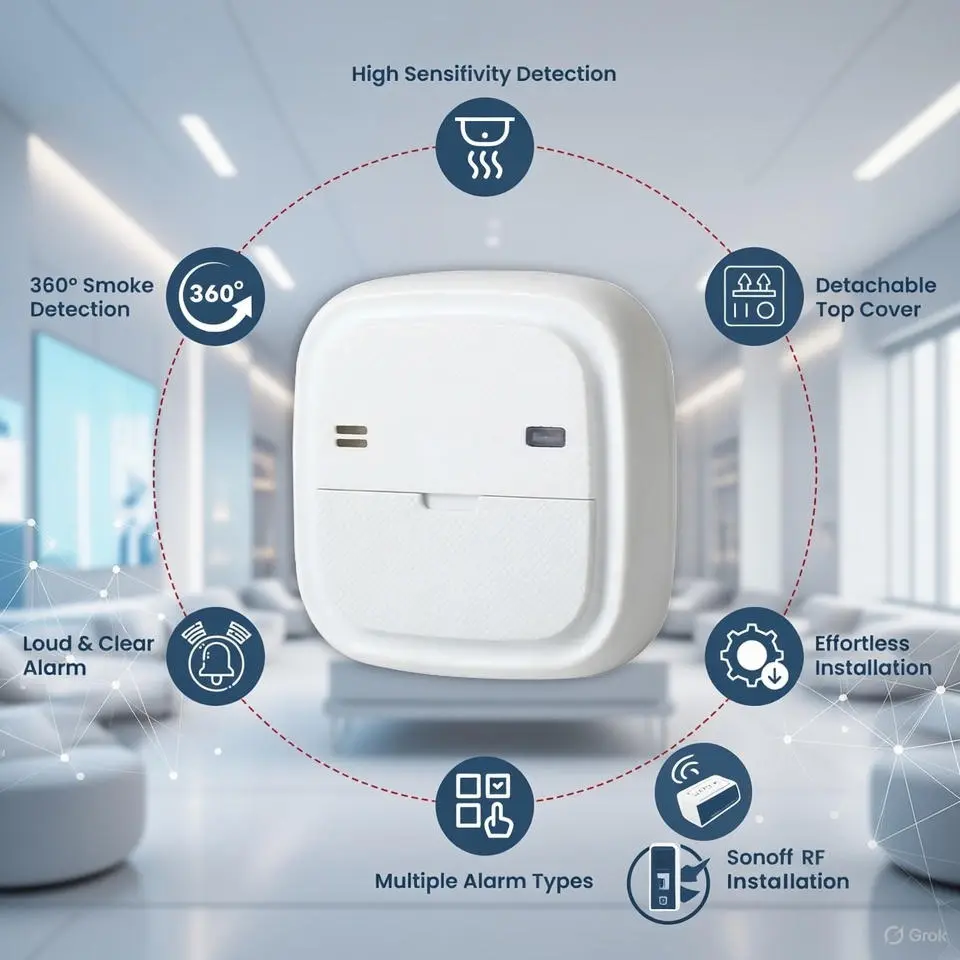– 360 degrees smoke detection and alarm, no dead angle, reliable.