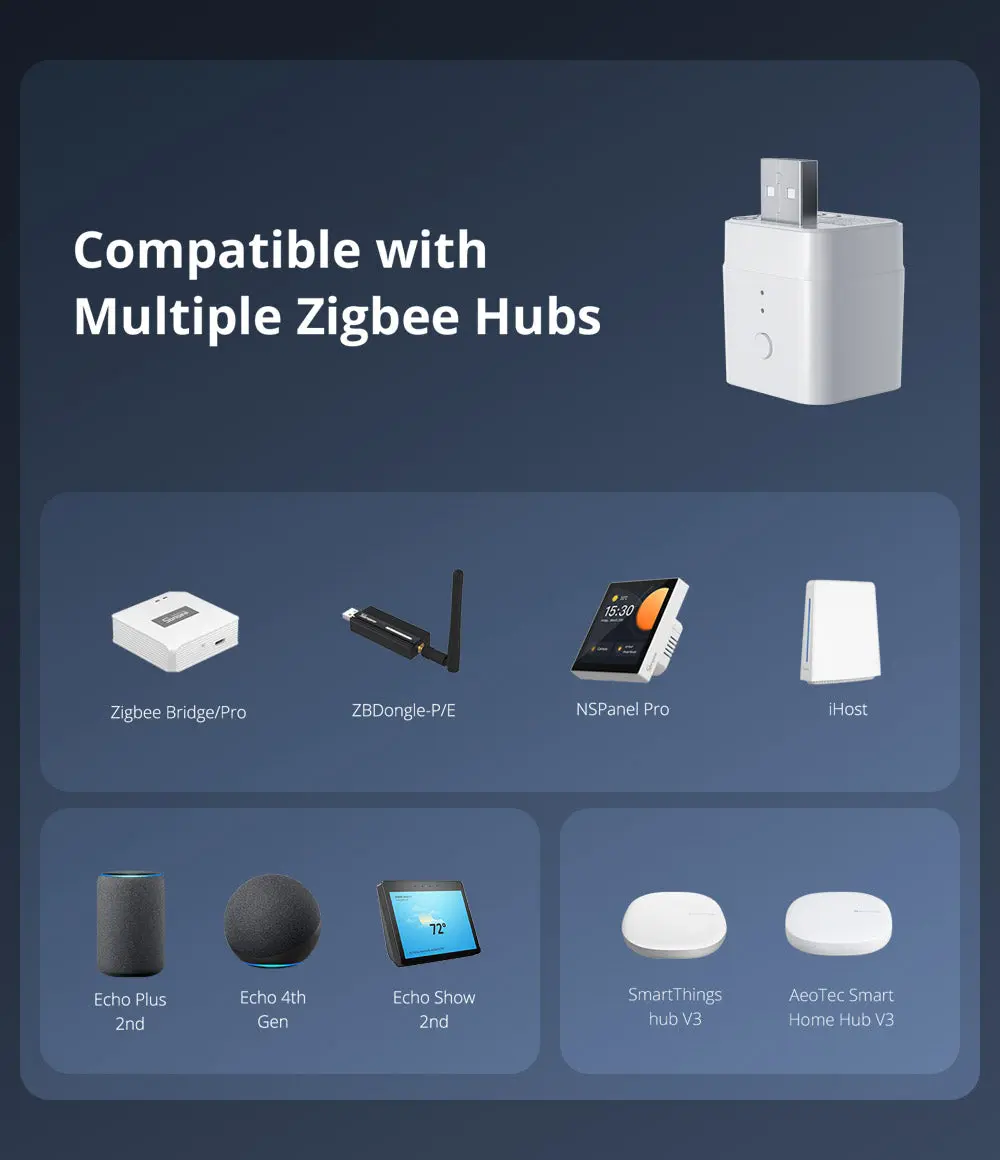 【Smart USB Control via Zigbee – Remote Access & Automation】Turn ordinary USB-powered devices into smart ones. As a Zigbee USB adapter, this device lets you remotely control USB devices, set smart timers, build automated scenes.