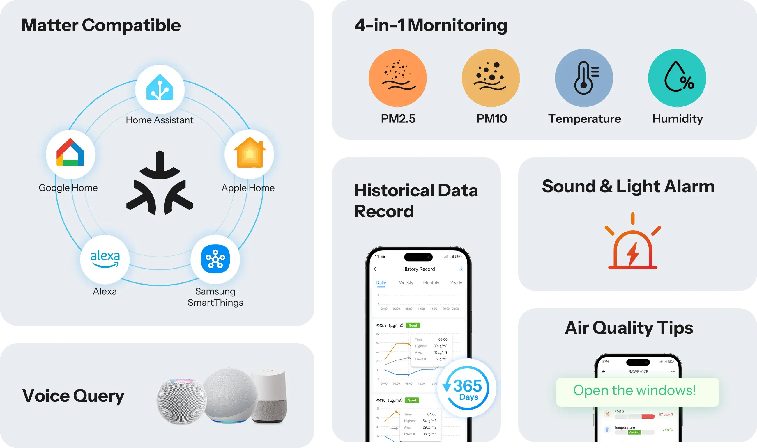 With a wider working coverage! AirGurad PM2.5 supports joining the Matter ecosystem,