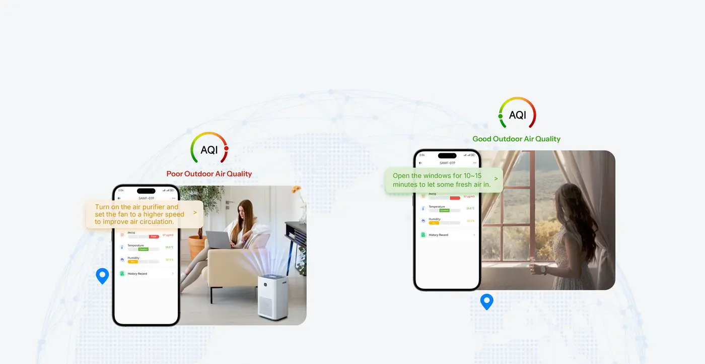 It will analyze the PM2.5/PM10 level in your room and the local Air Quality Index (AQI),