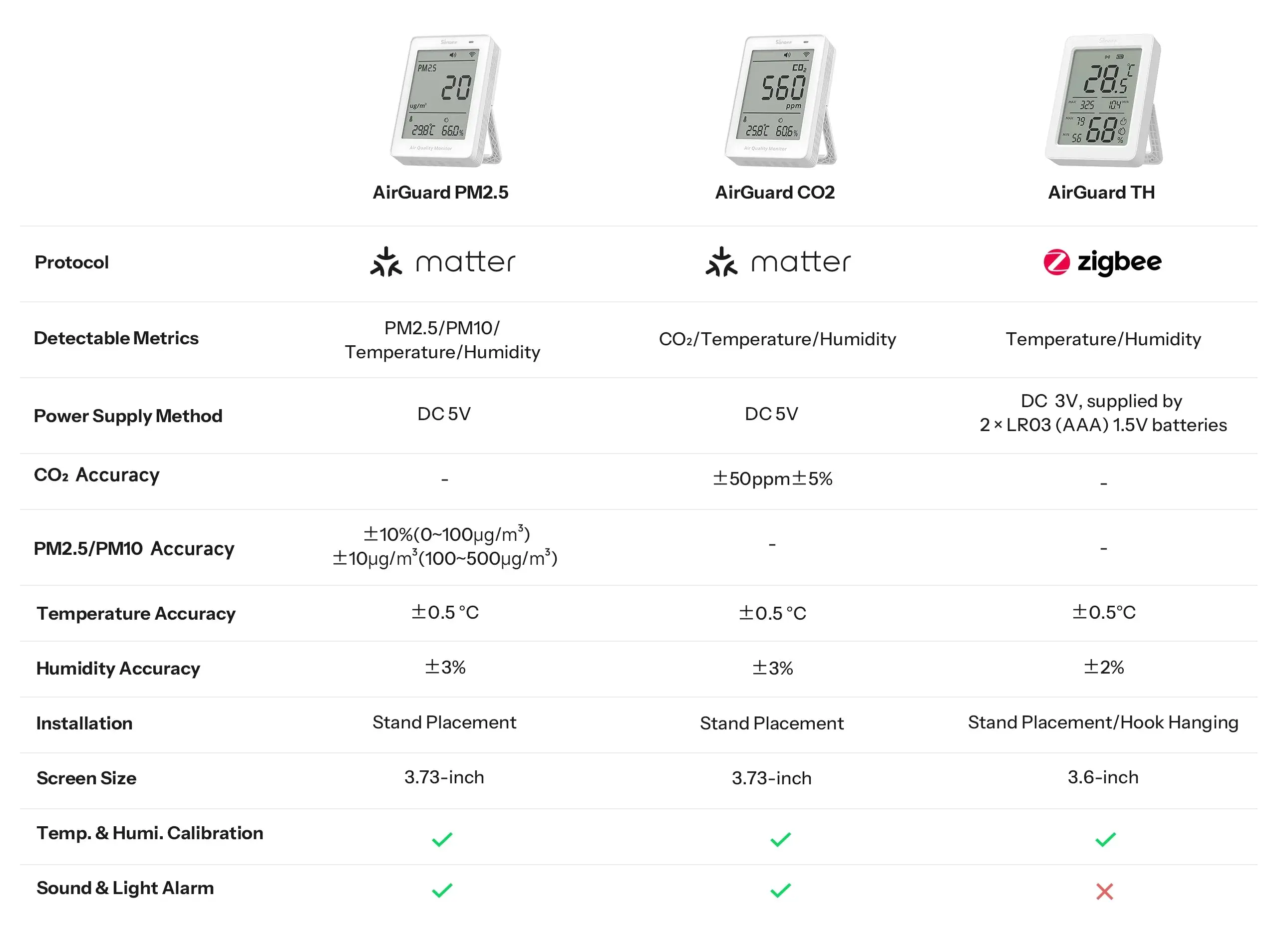 *AirGurad PM2.5 integration with the third-party Matter ecosystem requires a Matter hub.