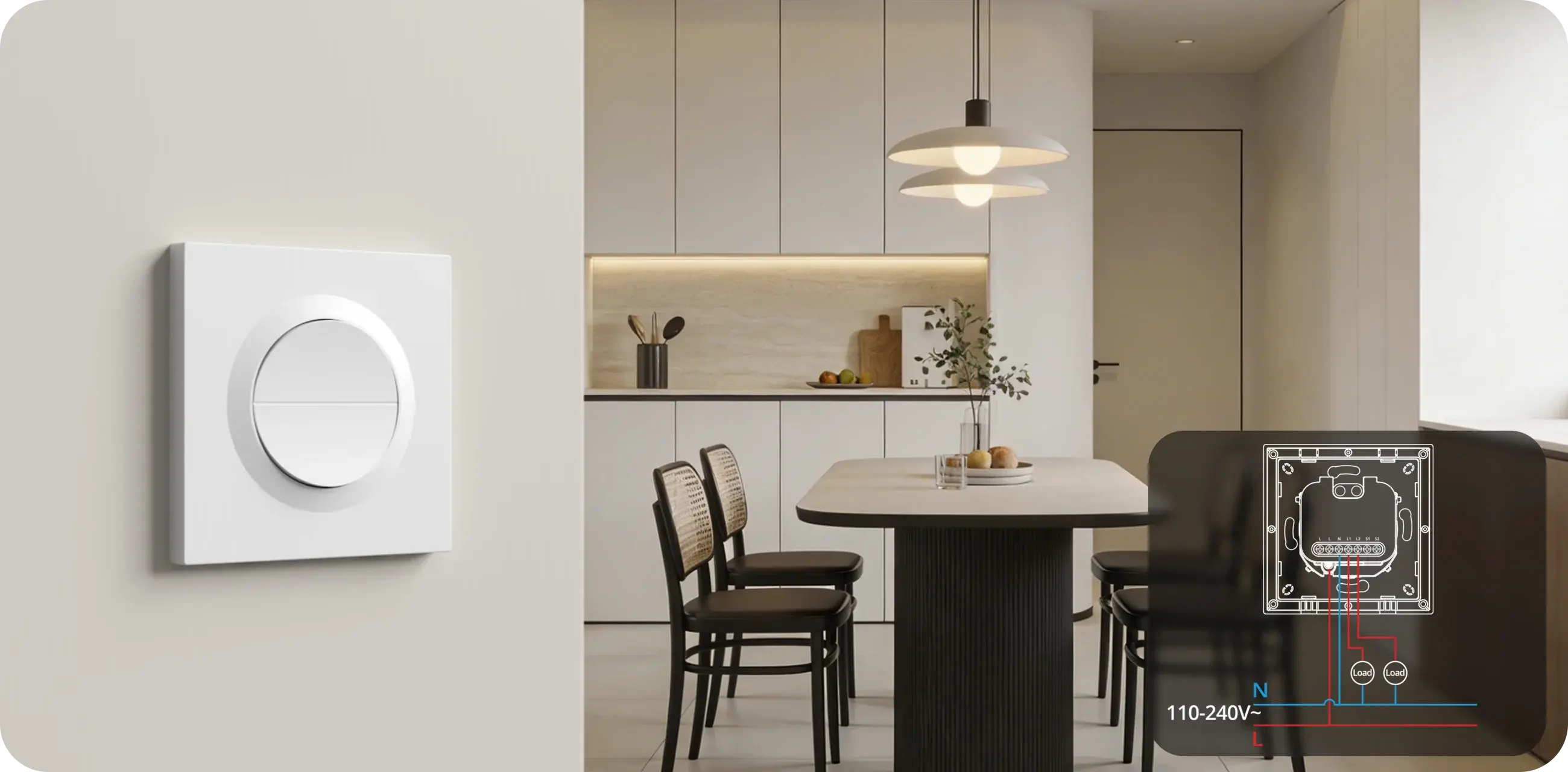 【Dual-Load Control】Features two independently controlled channels to manage two circuits at the same time, supporting a combined load of up to 16A for stable and flexible control of multiple lighting fixtures.