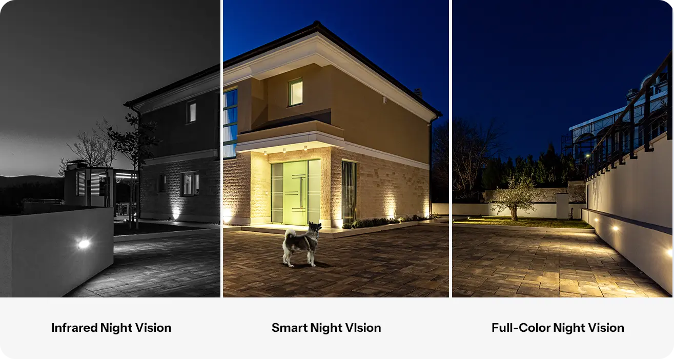 Select the night view that best suits your needs. It offers different night vision modes — Full-Color, Infrared (Black & White), and Smart Night Vision, to ensure clear visibility in any lighting condition. Whether you want vivid detail at night or prefer a discreet IR view, you're always in control.