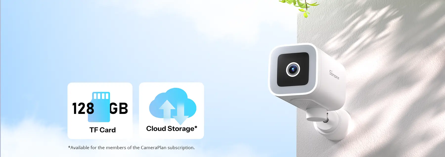 CAM-B1P supports both local storage via microSD card (128GB MAX) and optional cloud storage via the eWeLink app.