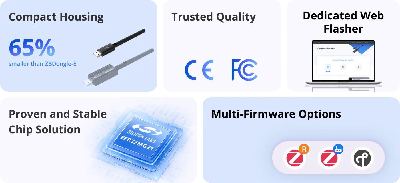 【Compact Size】65% smaller than the ZBDongle-E, making it more flexible to fit into various USB ports.
