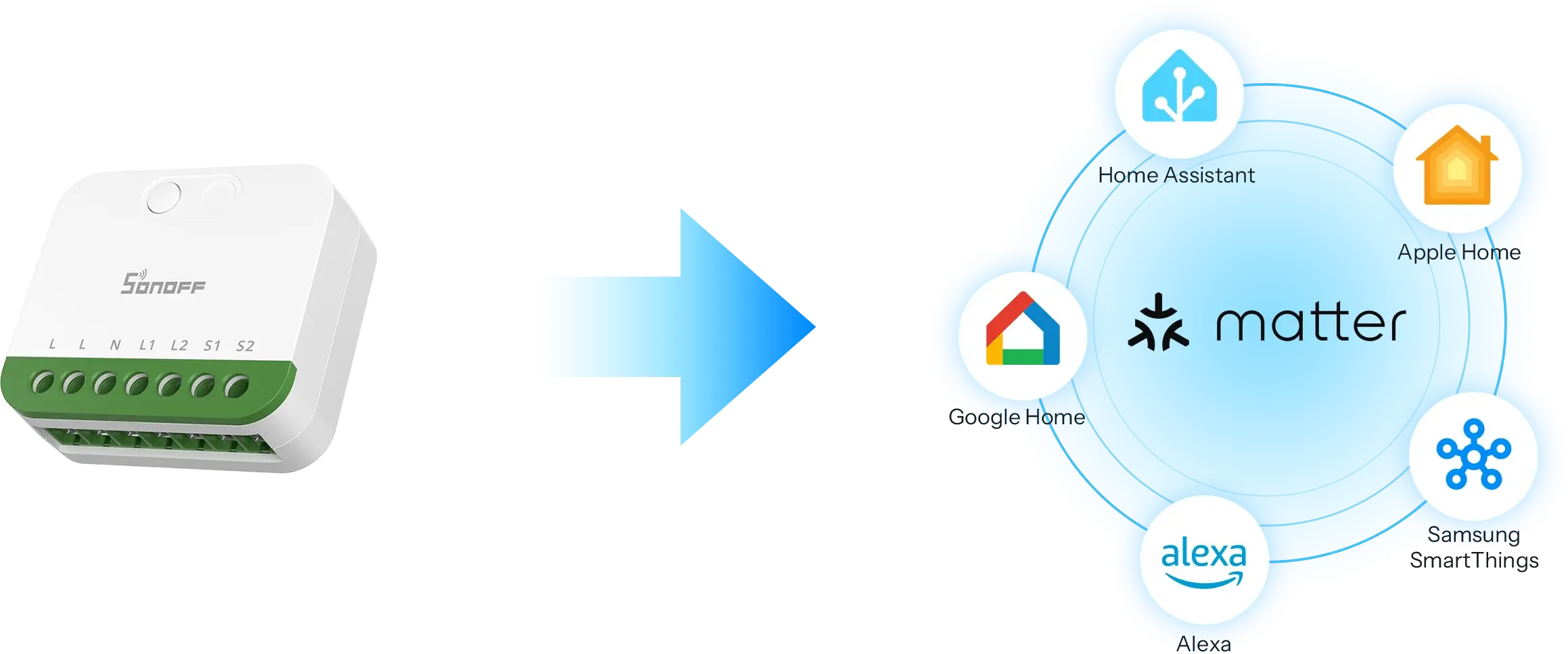 The MINI DUO is a compact dual-channel smart switch (supports up to 16A total load) that allows you to convert traditional wall switches into smart switches. It supports the Matter protocol over Wi-Fi, enabling seamless integration with devices from different brands.
