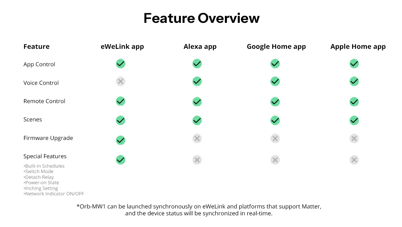 【Matter Compatibility】With Matter protocol support, Orb-MW1 ensures seamless integration with Apple Home, Amazon Alexa, Google Home, SmartThings, etc. Allowing you to work with other brands of Matter devices and build a unified smart home setup.