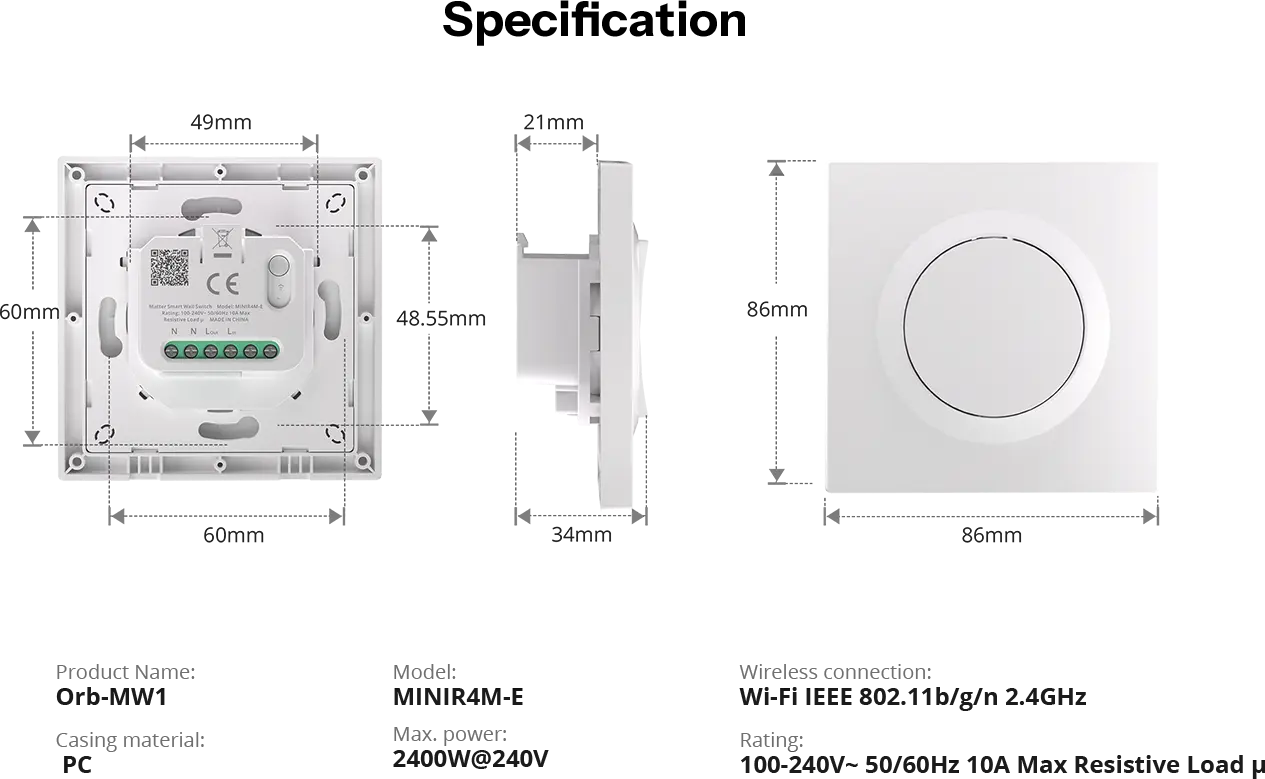 The Orb-MW1 is a Matter single-channel smart wall switch from the SONOFF Fusion Series. With Matter protocol compatibility, it integrates seamlessly with Apple Home, Amazon Alexa, Google Home, SmartThings, and other ecosystems, enabling a unified smart home. Detach Relay Mode ensures you can still remotely control your smart devices through "Smart Scenes" even when the physical switch is turned off. And if the device goes offline, the physical switch instantly resumes full control. It also offers smart timers, countdowns, and works with Sonoff sensors and switches for a fully connected automation system.