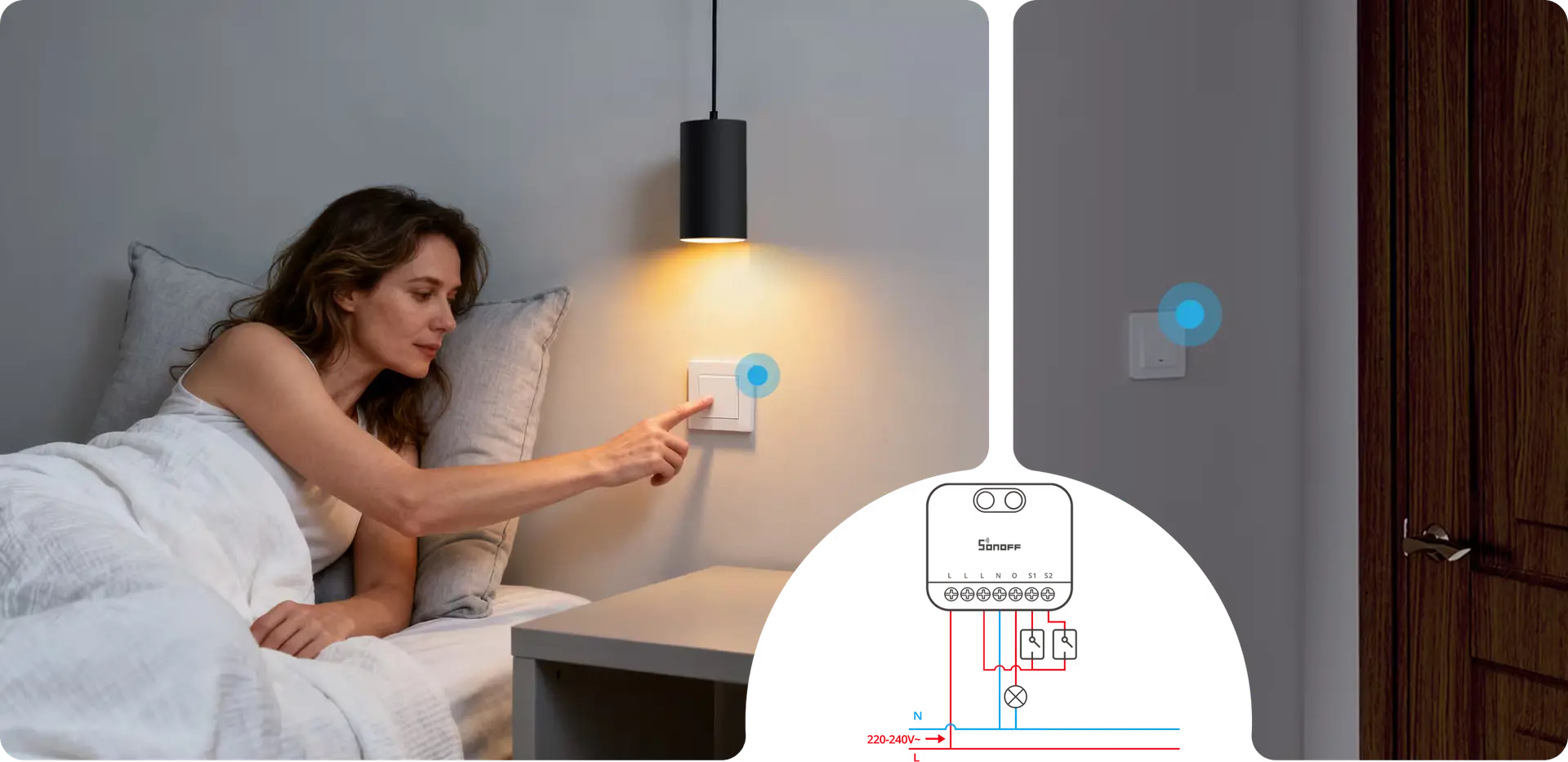 It supports two momentary or rocker switches, each simultaneously controlling the same light. You can install the switches at any two locations for flexible, convenient control—no need to walk back and forth.