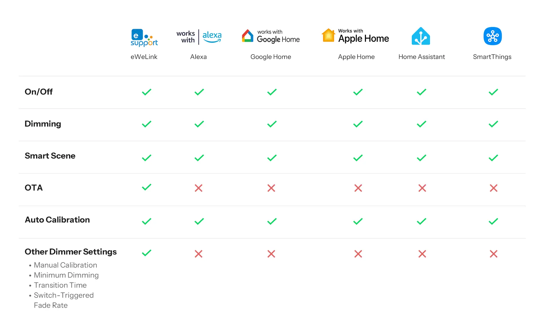 All these platforms support both switching the light on/off and adjusting its brightness.