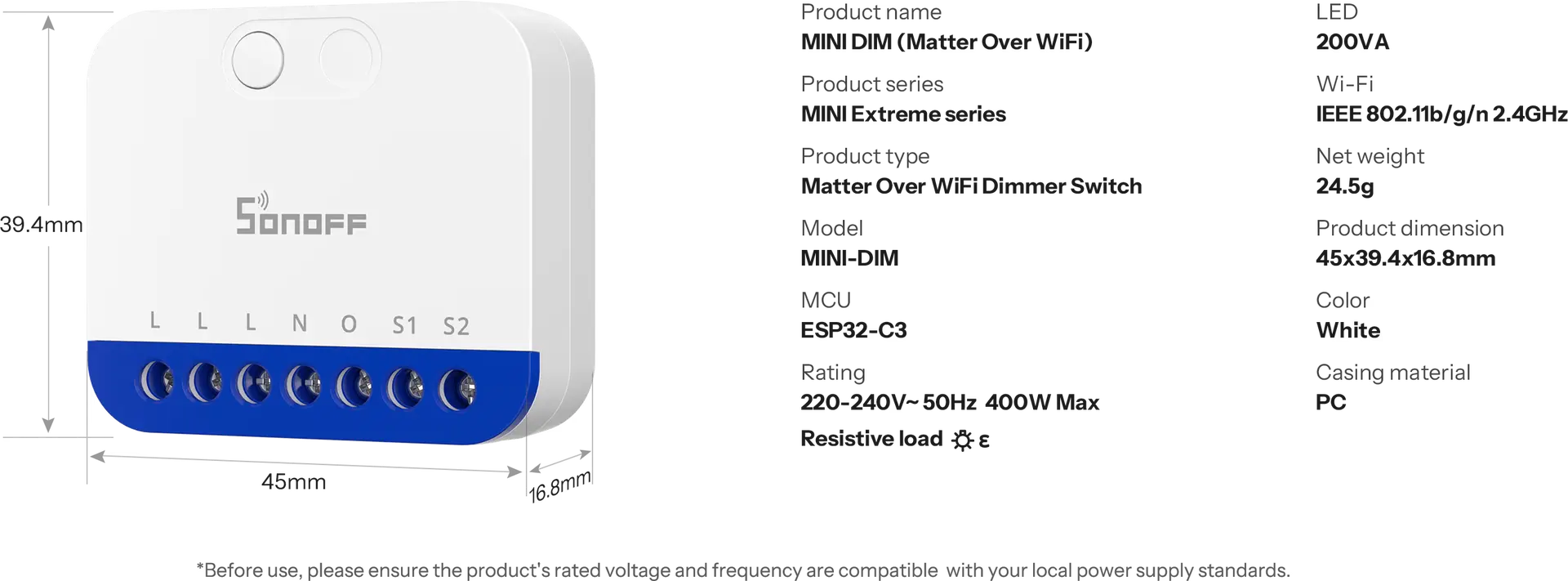 SONOFF MINI Extreme Matter Over WiFi Dimmer Switch | MINI-DIM