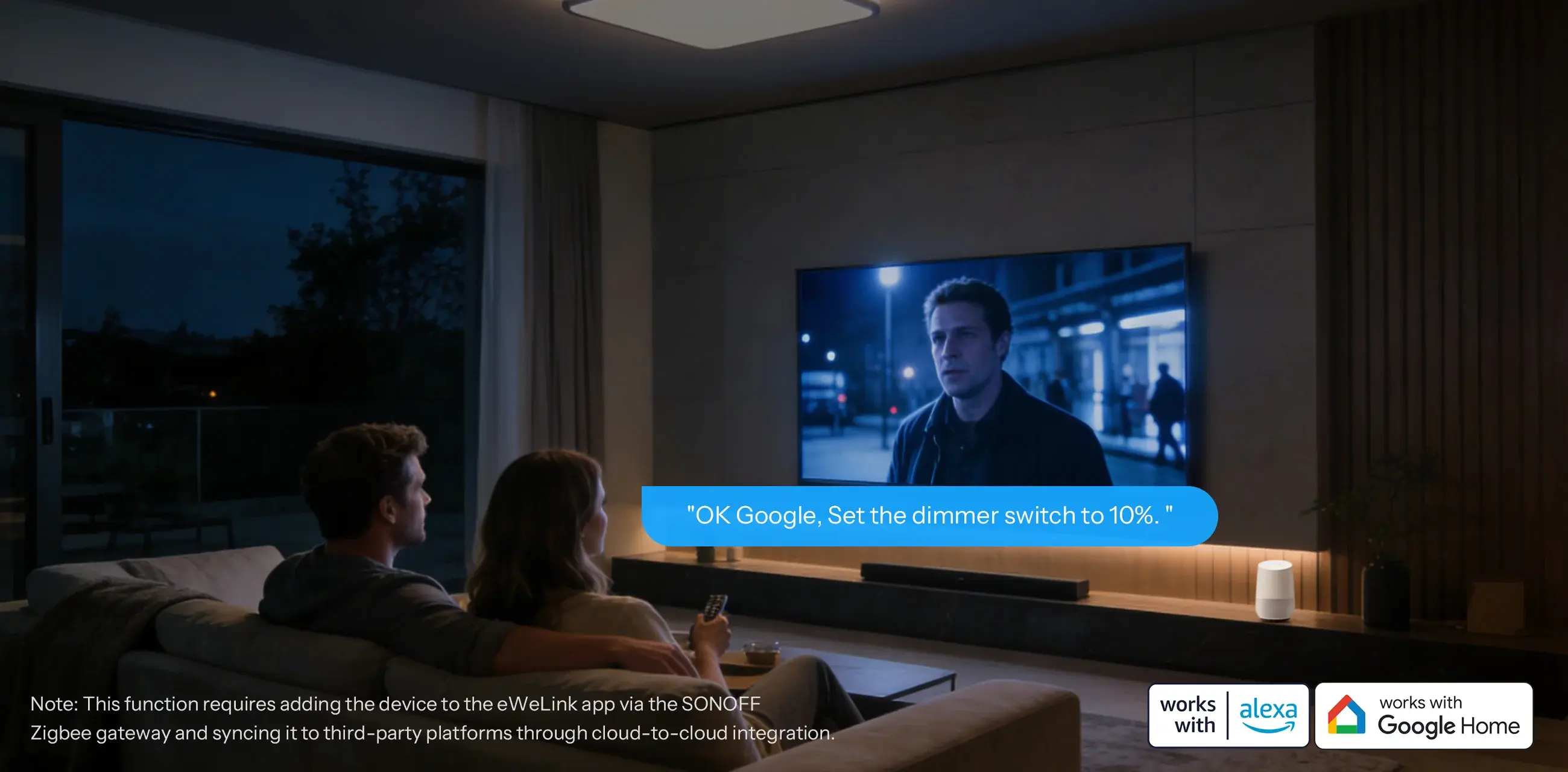 Yes. Once added to the eWeLink platform, it can be integrated with third-party services such as Amazon Alexa, Google Assistant, or Home Assistant for voice control.