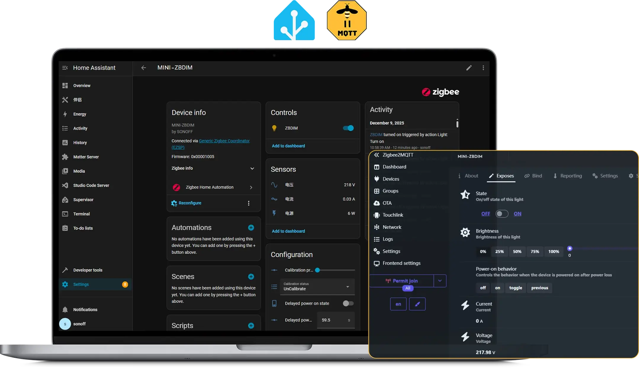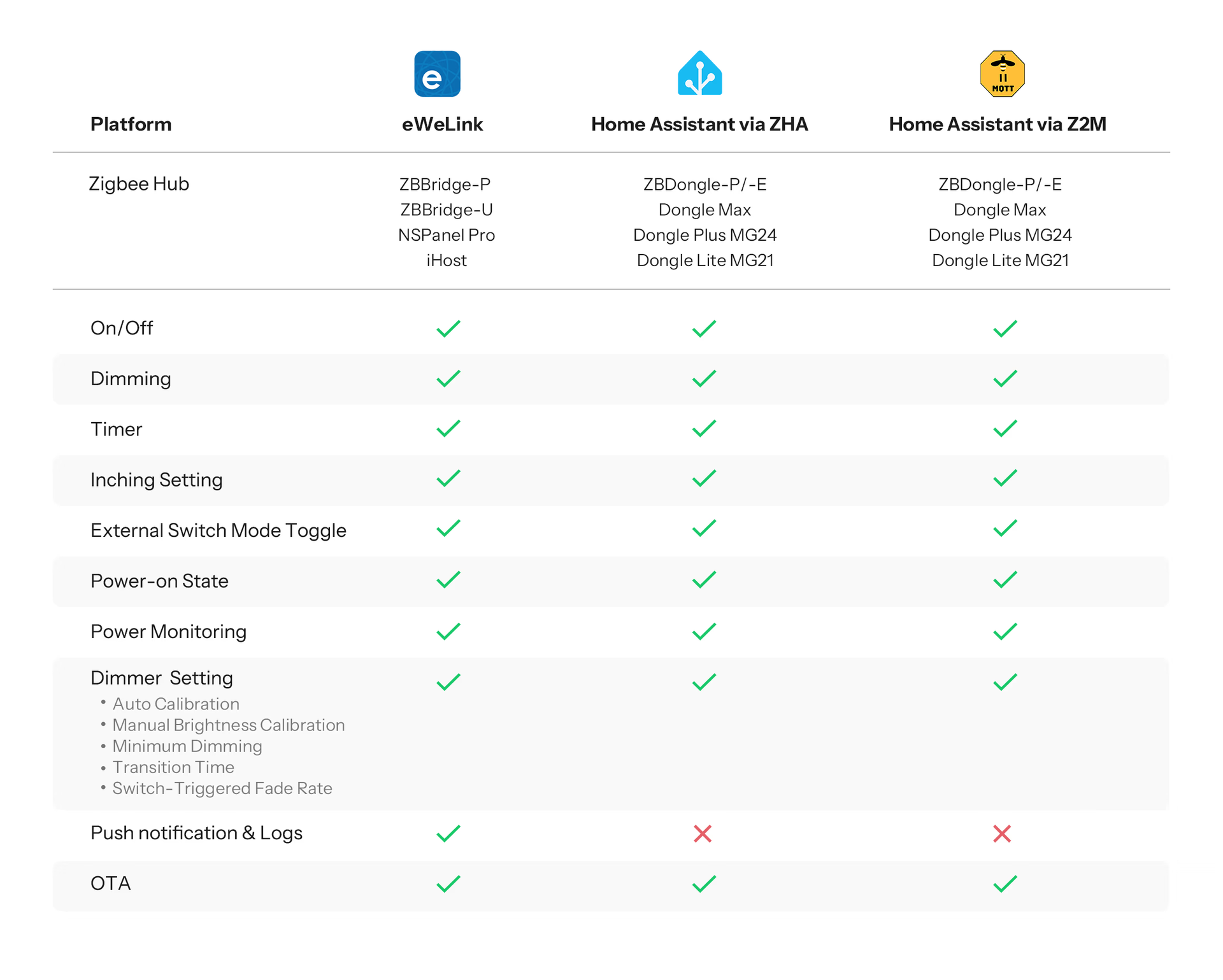MINI ZBDIM supports third-party platforms like Home Assistant and Zigbee2MQTT when paired with the SONOFF Dongle, enabling cross-brand device integration.